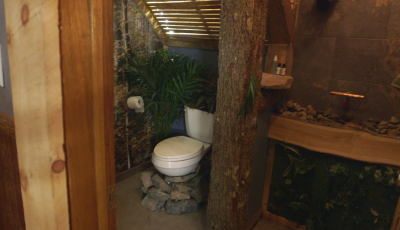 Andrew and Kevin are building a woods-themed bathroom that recreates a serene forest setting for when they really gotta go, because when nature calls, there’s no better place to be than in nature itself!