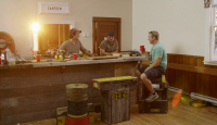For this dual-purpose project, we’ll hang a projector screen from the ceiling and a retractable movie screen from the stage. Flanking our screen will be two custom marquee posters backlit with LED strip lights. To our classic theatre seats, we’ll add some new features like a flip seat popcorn maker and a date/drink holder. The theatre space transforms to become a batting cage complete with a pitching machine built from an old treadmill. The ball feeder will be synced up to a looped pitching video of one of us on the mound, giving the illusion of a real baseball batting experience. This dual purpose project will give us yet another way to play and relax in the house.