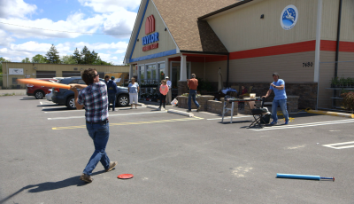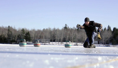 The boys are let loose in a local TIMBER MART store and the brothers make “land” curling stones.