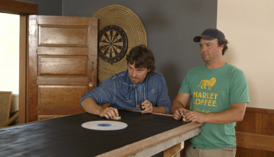 To get their disc golf game going, Andrew and Kevin are building a disc golf basket that doubles as a beautiful industrial-style crokinole table.