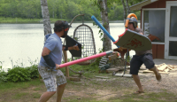 The boys take the mantra “work hard, play hard” to a whole other level by building a work bench that converts to a table tennis table. Best part? It’s all done inside a TIMBER MART store.
